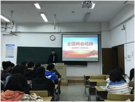 4月15日晚6点,太阳成集团tyc33455cc官网开展了“不忘初心跟党走,牢记使命学担当”——聚焦国事,致敬先锋系列党日活动第一讲。本次的党日活动以主题宣讲会的形式开展,给18级所有学生,17级优秀团支部,以及所有入党积极分子普及两会知识,带领大家一起致敬王继才等楷模人物,学习爱国奉献精神。作为主题宣讲会的第一站,我院16级辅导员孙浩老师在电子电工大楼516为18级视传班的同学们开展了第一场党日活动宣讲会。
