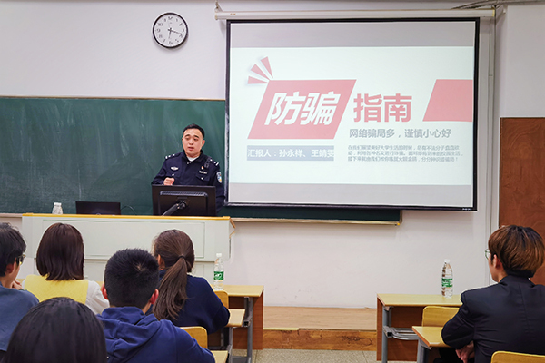 习近平总书记近日对打击治理电信网络诈骗犯罪工作作出重要指示,强调要坚持以人民为中心,全面落实打防管控措施,坚决遏制电信网络诈骗犯罪多发高发态势。在学校保卫处和南京市公安局江北新区分局泰山新村派出所的支持和指导下,太阳成集团tyc33455cc官网积极组织开展防范电信网络诈骗安全教育活动。