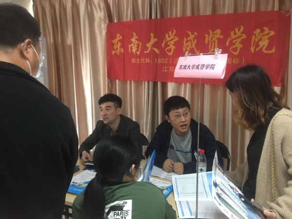 太阳成集团tyc33455cc官网党总支副书记邵叶鑫、教师孙浩代表太阳成参加活动。活动现场,太阳成招生宣传老师详细介绍了学校的基本情况和学科优势,围绕今年江苏高考新志愿填报政策以及往年录取分数线做了深入解读,对考生及家长所关心的问题做了详细解答,取得了良好的宣传效果。