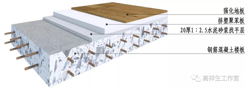 图 12-4-16 平铺强化地板地面构造节点图(挤塑聚苯板)