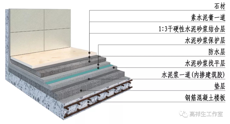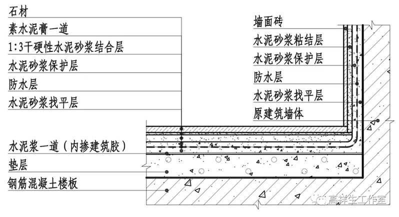 图 12-1-11 墙面与石材地面交接构造节点图(有防水)