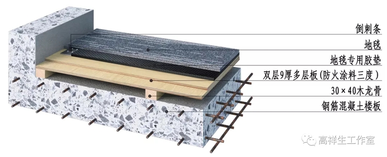 图 12-5-4 木龙骨基层地毯地面构造节点图