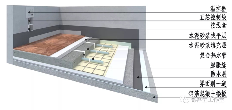 图 12-9-6 复合地板水暖地面三维图(发泡水泥绝热层)方向二