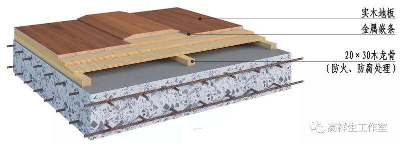 图 12-11-11 混凝土楼梯实木地面构造节点图