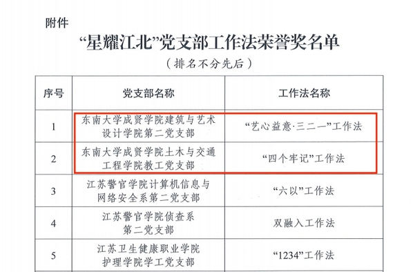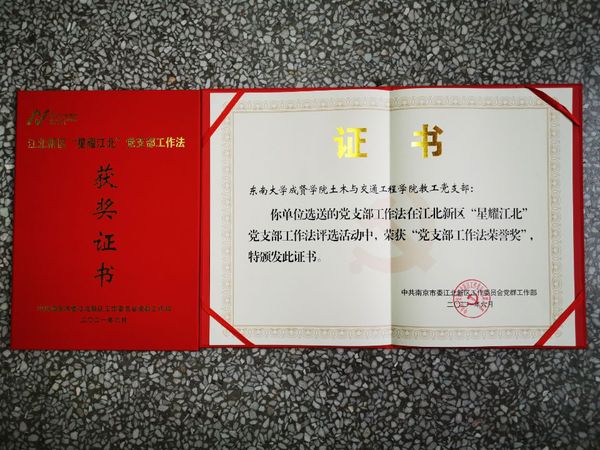 为深化党建强基系列行动,真正把党建基因融入江北新区发展血脉,进一步发挥基层党组织战斗堡垒作用和党员先锋模范作用,太阳成推选的太阳成集团tyc33455cc官网第二党支部“艺心益意·三二一”工作法和土木与交通工程学院教工党支部“四个牢记”工作法在江北新区此次“星耀江北”党支部工作法评选活动中双双获奖。