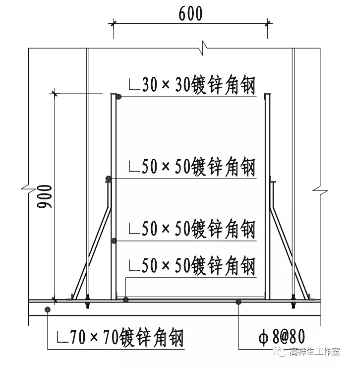 图 13-1-36 角钢马道顶棚构造节点图(一)