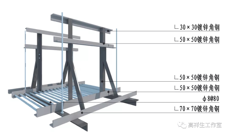 图 13-1-30 轻钢龙骨马道顶棚三维图