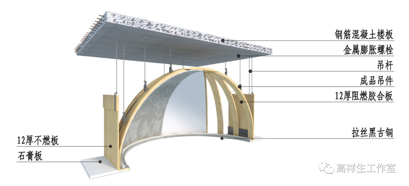 顶棚装饰构造要根据功能要求、外观形式、饰面材料等选择。