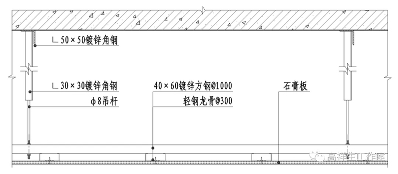 图 13-1-15 扁钢龙骨顶棚构造节点图