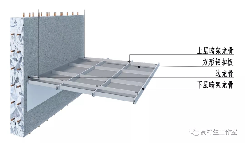 图 13-3-2 方形铝扣板顶棚三维图方向二