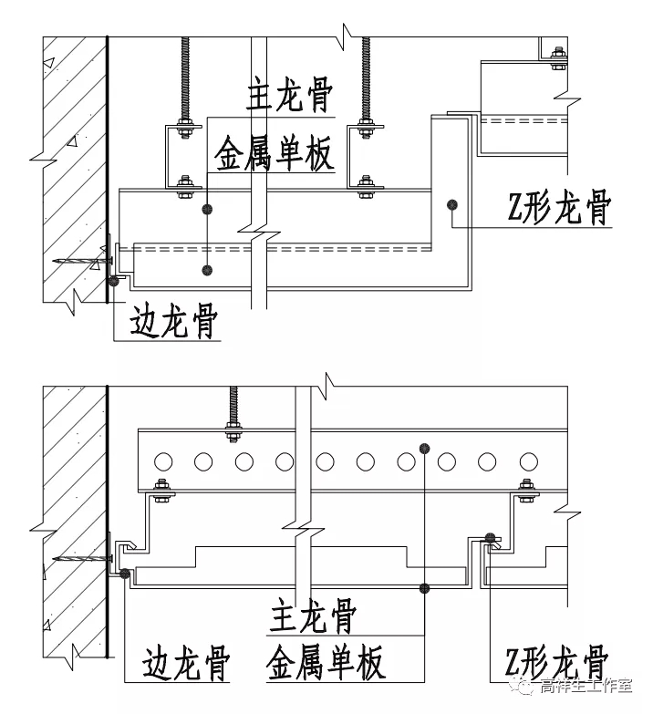 图 13-3-32 明龙骨金属网顶棚构造节点图(二)