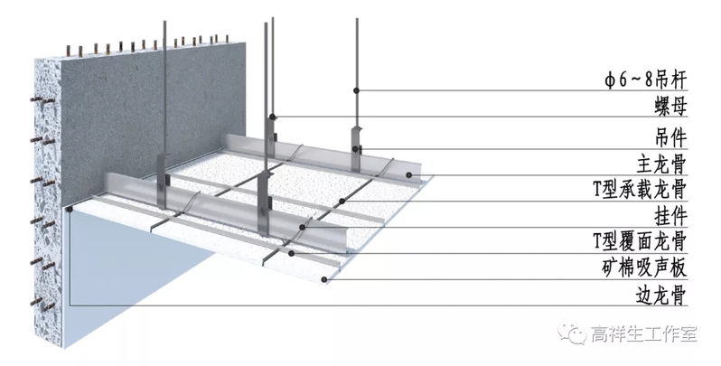 图 13-2-21 暗明龙骨结合矿棉板顶棚三维图