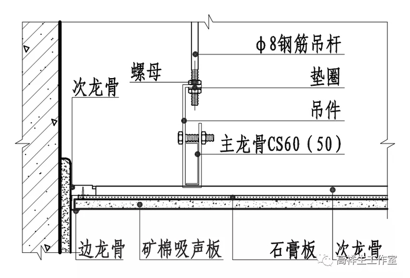 图 13-2-28 复合粘贴矿棉板顶棚构造节点图(二)