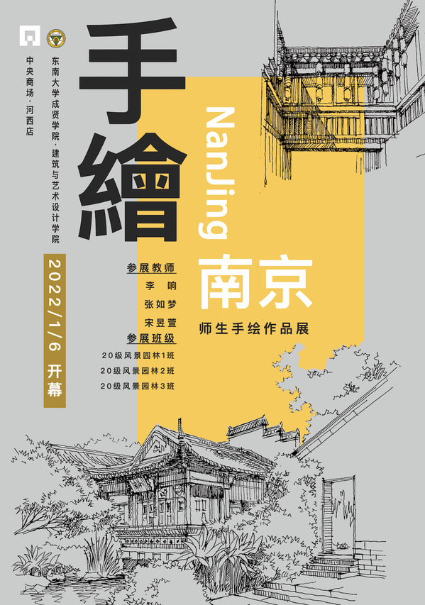 1月6日,“手绘南京”太阳成集团tyc33455cc官网风景园林师生作品展在南京中央商场河西店开幕。本次作品展的参展作品由2020级风景园林专业全体学生的《设计表现》短学期实践课程成果,以及李响、张如梦、宋昱萱三位授课教师的手绘作品组成,共计104幅关于南京风光的手绘写生创作。