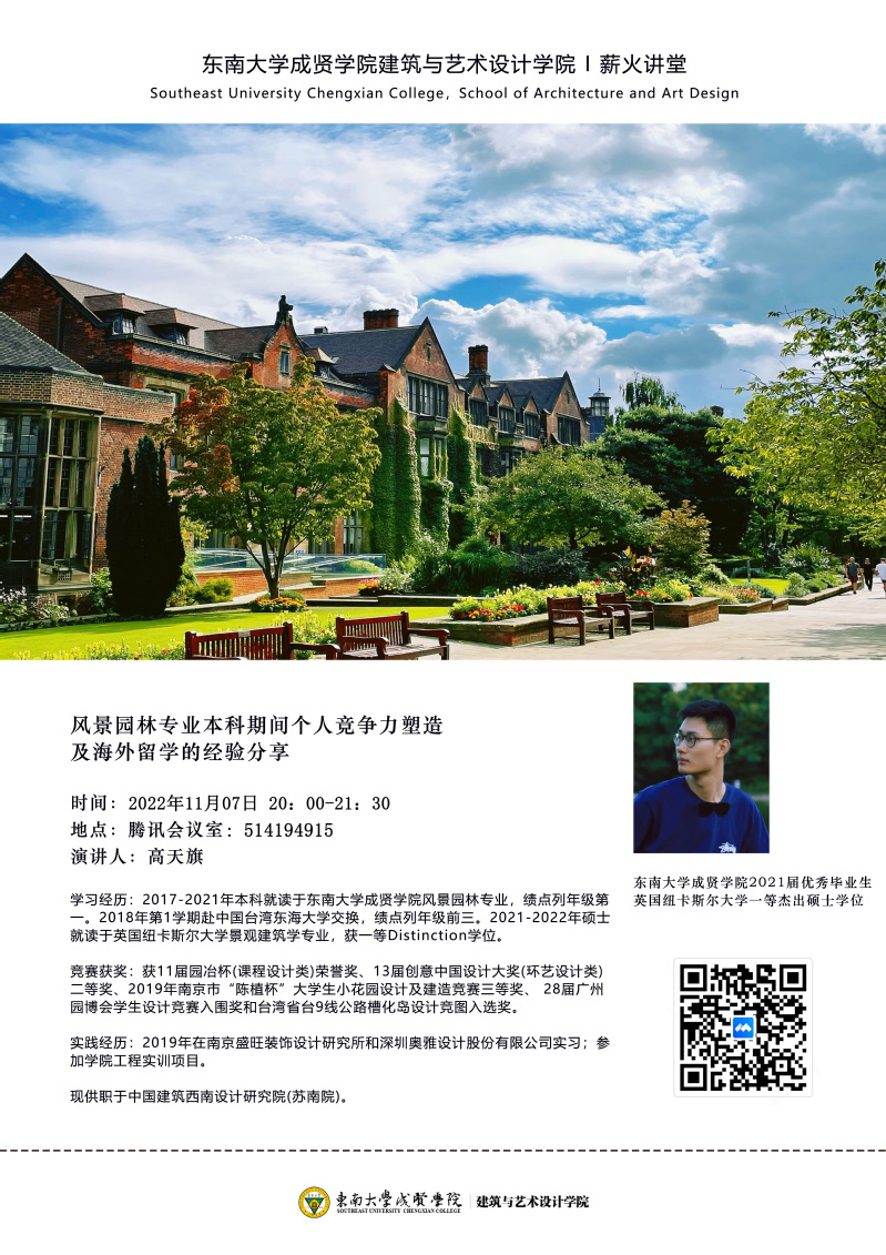 太阳成集团tyc33455cc官网薪火讲堂系列讲座之一:风景园林专业本科期间个人竞争力塑造及海外留学的经验分享