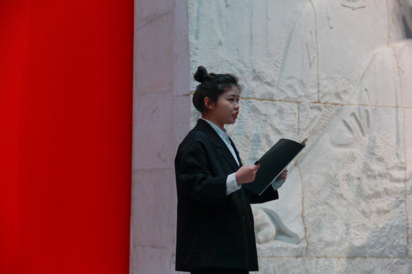 接着,大家移步至史料陈列馆大厅,学生党员王乐作为领誓人带领新党员入党宣誓、老党员重温入党誓词。面对鲜艳的党旗,所有党员举起右拳,铮铮誓言响彻云霄。学生党员陈会凡代表大家发言,她说,我们要坚定树立为共产主义事业奋斗的决心,勇担一名共产党员应当肩负的责任,真正体会中国共产党的伟大与光荣。学院党总支书记唐小平发表讲话,他带领全体党员近距离感受历史事件,深刻理解“梅园精神”,勉励大家牢记党员身份,践行入党誓词,永葆共产党员的先进本色。