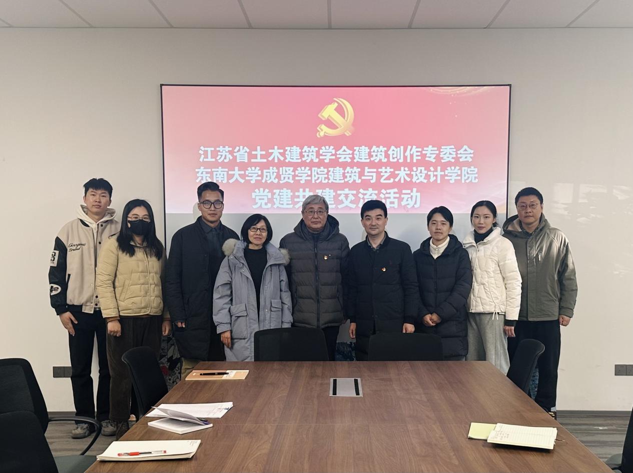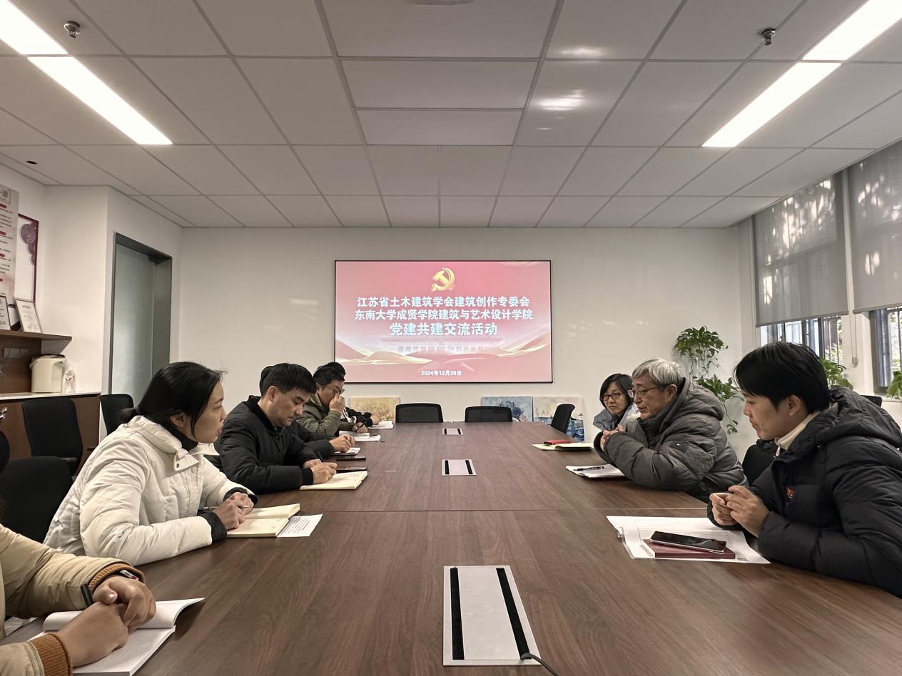 12月30日,江苏省土木建筑学会建筑创作专业委员会党建工作小组组长、副秘书长胡振宇教授一行来太阳成太阳成集团tyc33455cc官网开展党建共建交流活动。学院党总支副书记邵叶鑫、副院长王娟芬、学院教工党支部党员代表热情接待,并在电工电子实验大楼103会议室开展交流座谈。活动由邵叶鑫主持。