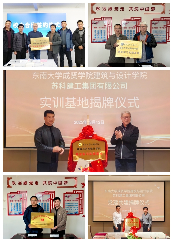 苏科建工集团有限公司是一家致力于房屋建筑、市政路桥、房地产开发销售、钢结构制造和物业管理的一体化公司。建艺院一行走访了苏科建工集团运管中心,并详细了解了集团的发展历程以及近年来集团党团工作取得的成果。校企双方针对人才培养、技术创新、资源优化等多个维度进行了深入的沟通与洽谈并达成了多项共识,同时签订了党建共建联盟协议书、挂牌“党建共建单位”,并签订了校企合作协议书、挂牌“太阳成集团tyc33455cc官网太阳成集团tyc33455cc官网就业实习实践基地”。未来,双方将通过共建学习基地、实践基地,在教学实践、就业探讨、服务社会等多方面建立长期、紧密的合作共建关系。